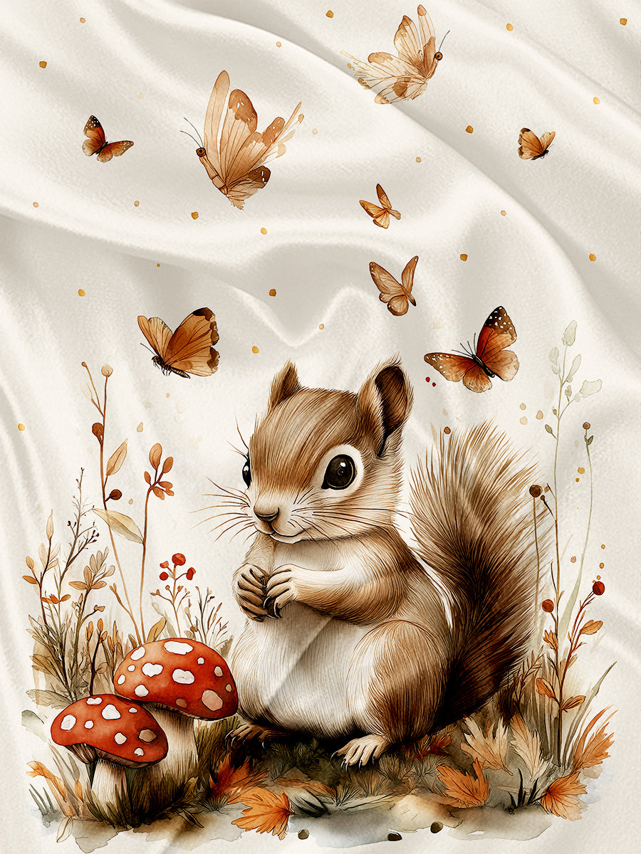 Panneau pour Serviette et Couverture Écureuil, papillon et champignon