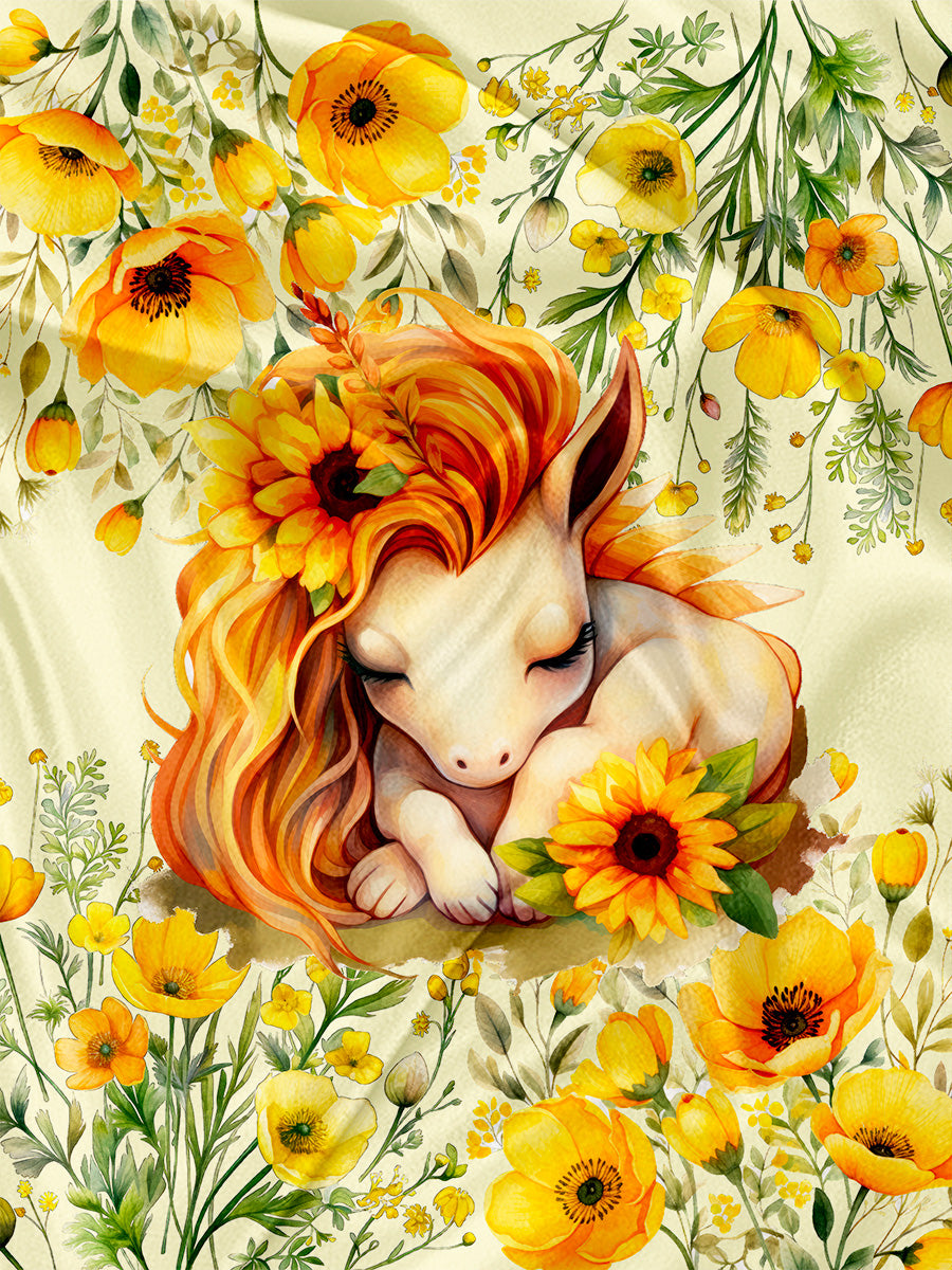 Panneau pour Serviette et Couverture Licorne et fleurs printanières - Pelubo Design