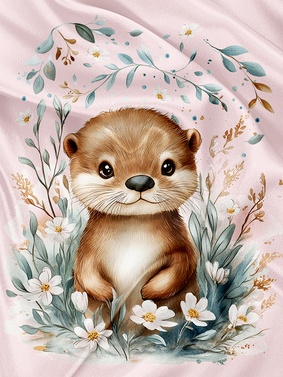 Panneau pour Serviette et Couverture Loutre fleurs et feuillage aquarelle
