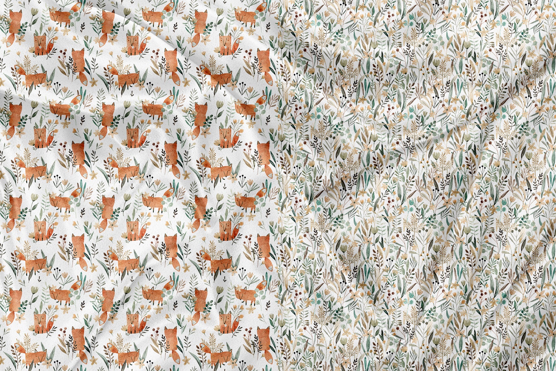 Panneau pour Vêtement et Couverture Renard et fleur aquarelle