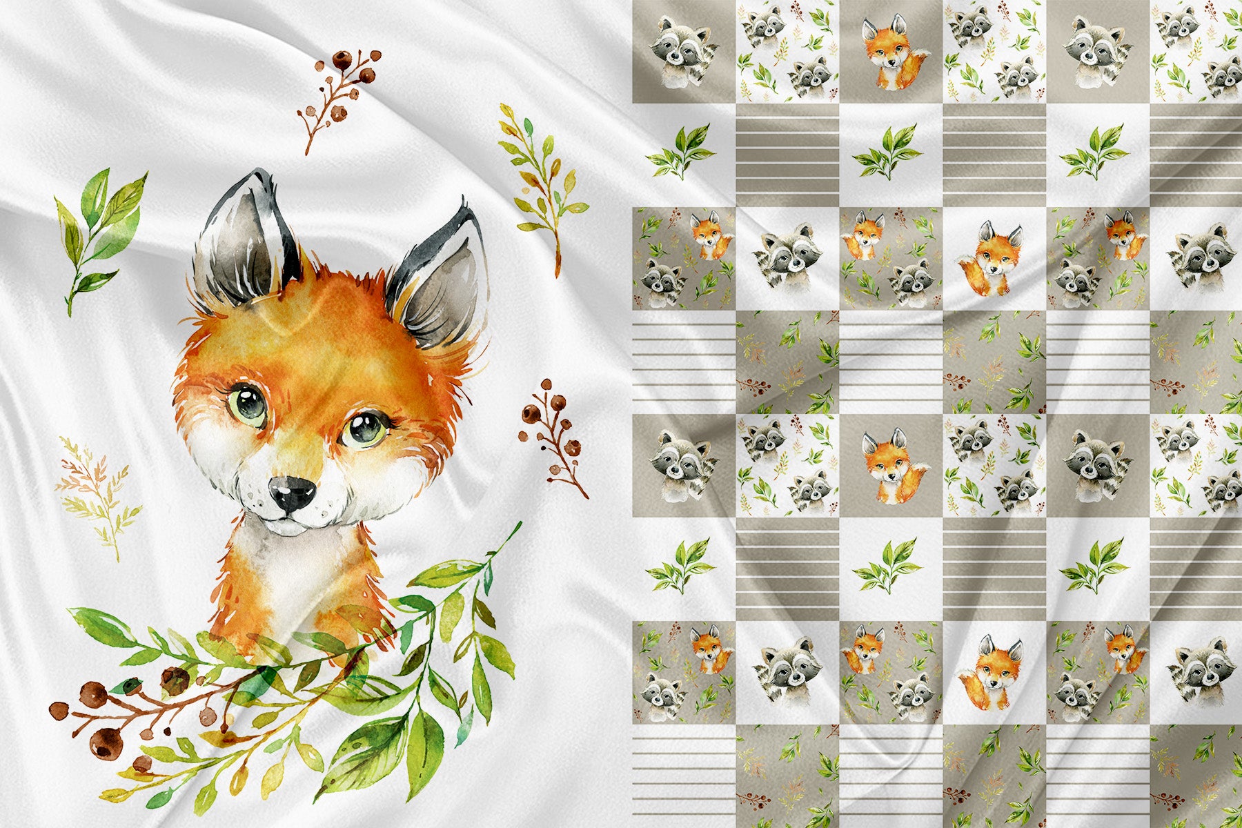 Panneau pour Vêtement et Couverture Raton Renard et patchwork
