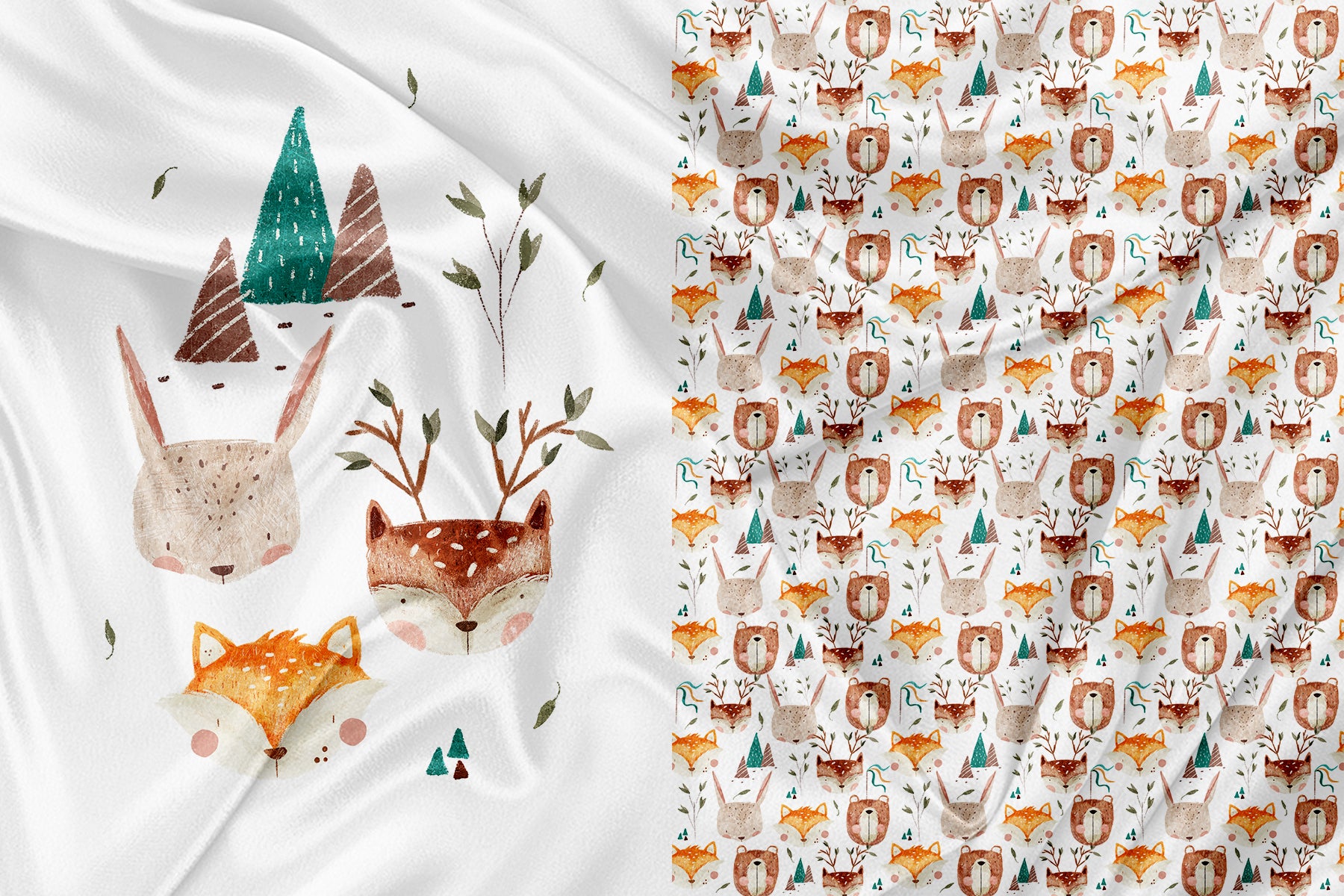 Panneau pour Vêtement et Couverture Woodland friends fond blanc