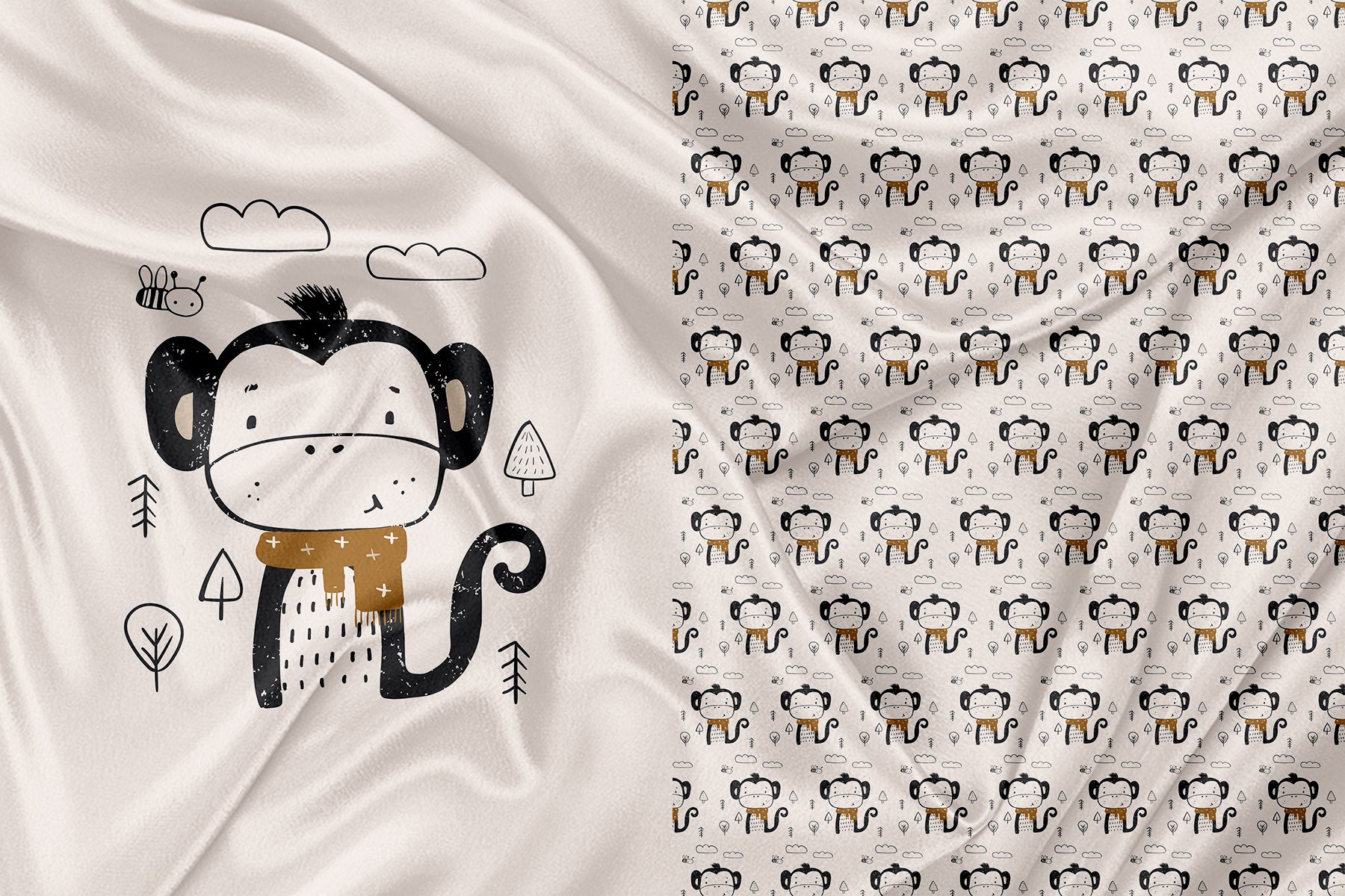 Panneau pour Vêtement et Couverture Singe et son foulard