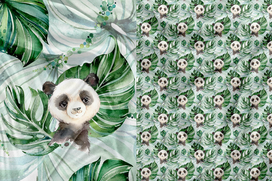 Panneau pour Vêtement et Couverture Panda Tropical