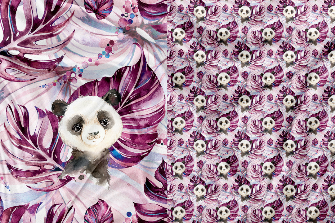 Panneau pour Vêtement et Couverture Panda Tropical Prune