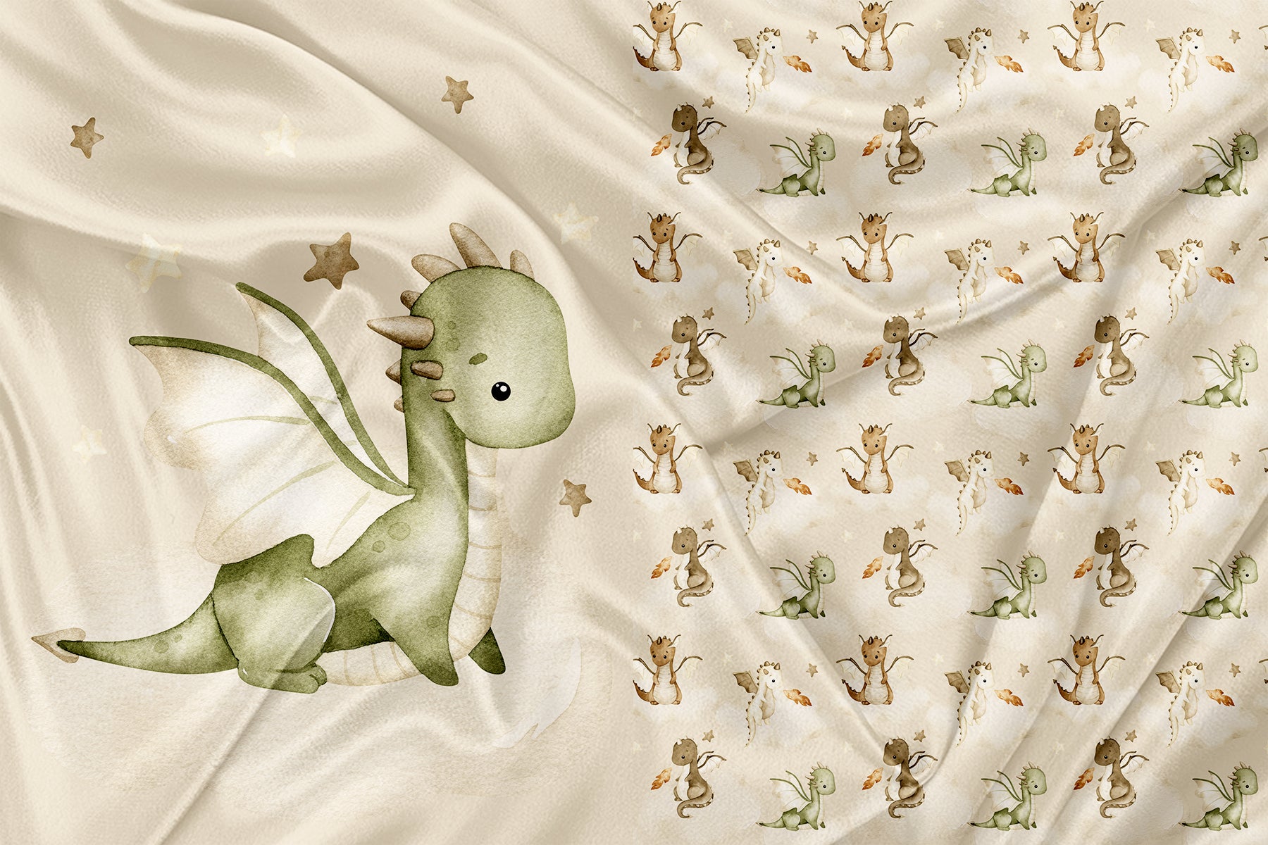 Panneau pour Vêtement et Couverture Dragon VERT dans les nuages
