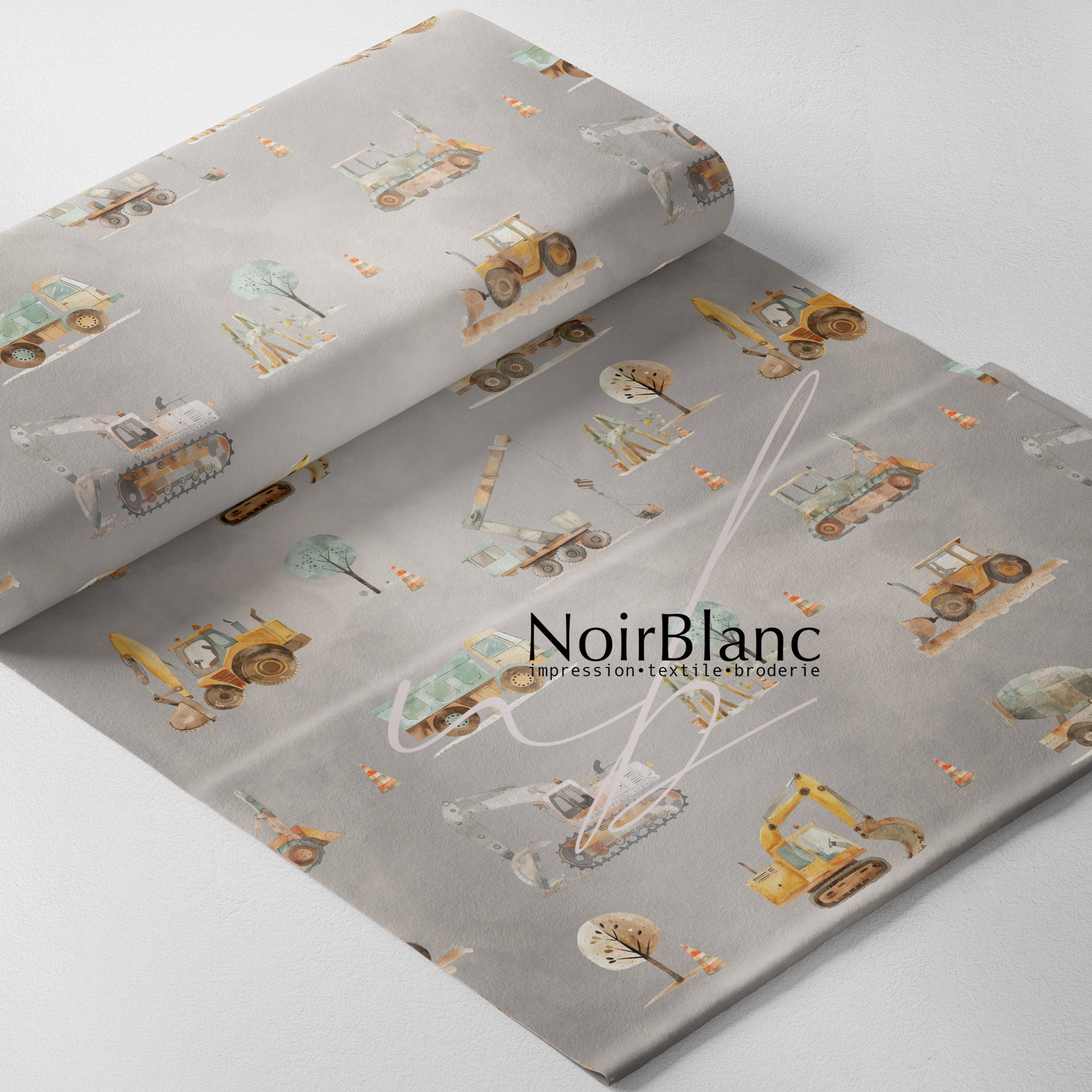 Minky - Camion et tracteur en chantier de construction fond terre 2m - surplus