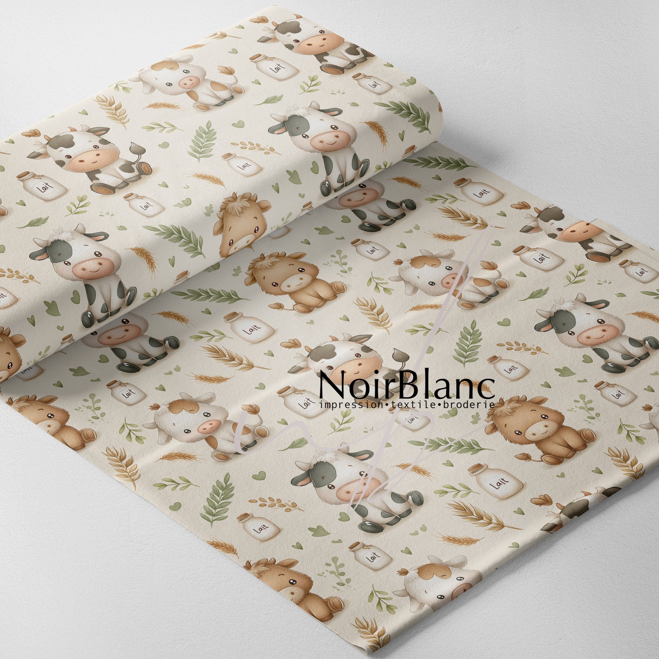 100% coton - Bébé vache et lait - 1m - surplus