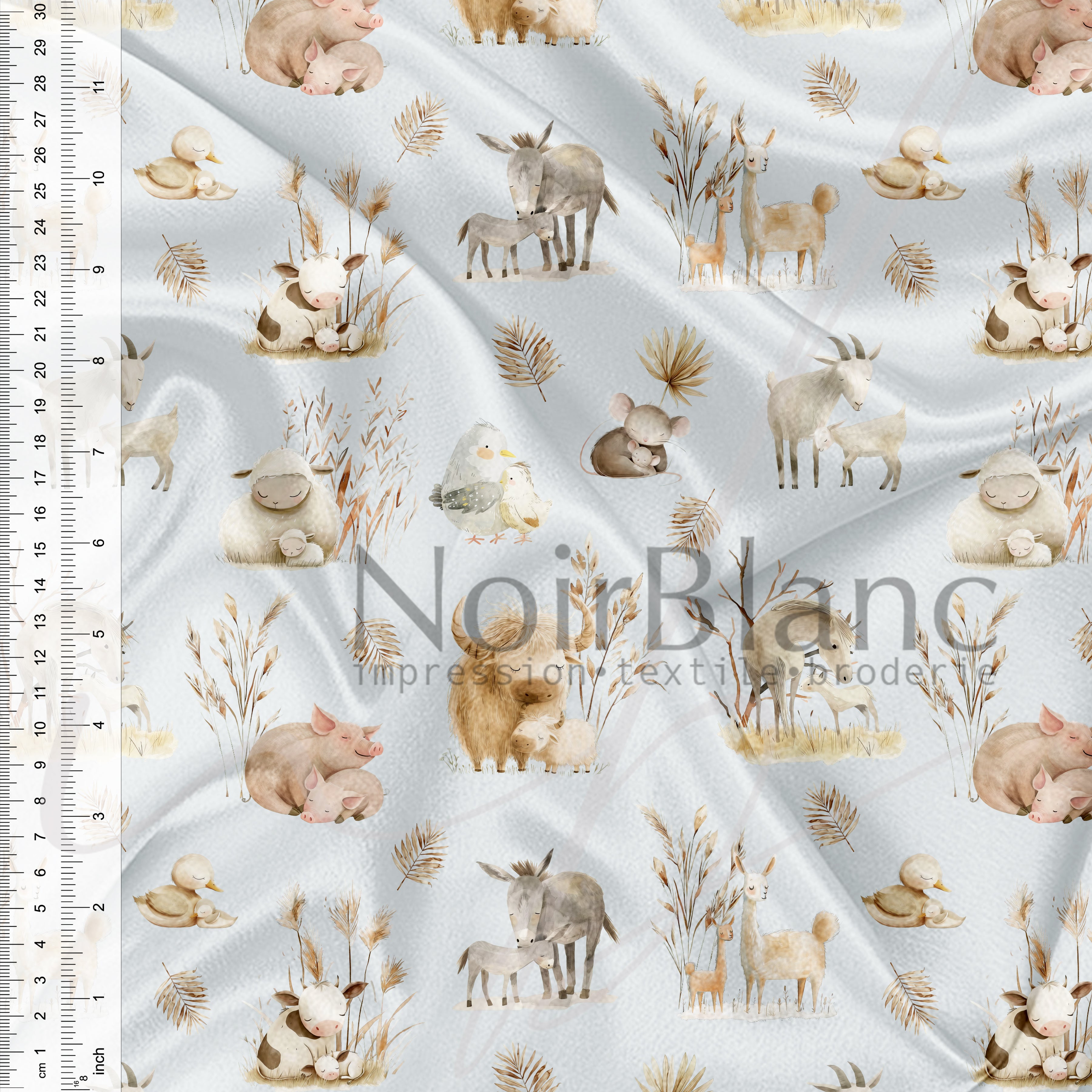 *** La largeur de nos tissus peut varier entre 57 et 60 pouces de large. Par conséquent, la largeur de la zone d'impression variera aussi. TOUT défaut à l'intérieur de la largeur d'impression mais à moins de 1 pouce du bord est considéré comme acceptable et ne sera en aucun cas considéré comme étant défectueux. Par exemple, un tissu où 60 pouces est imprimé, nous nous assurons que 58 pouces est sans défaut. De plus, tout léger défaut d'impression n'excédant pas 1 pouce ou sur le verso du tissu seront jugés comme acceptables. Nous imprimons sur plusieurs imprimantes afin de vous offrir un service d'impression rapide, il peut y avoir une différence de couleurs d'une imprimante à l'autre, d'une fibre à l'autre particulièrement entre les fibres naturelles et le polyester. Nous vous suggérons fortement de toujours commander suffisamment d'un même tissu dans une même commande pour pouvoir finaliser votre projet. ***