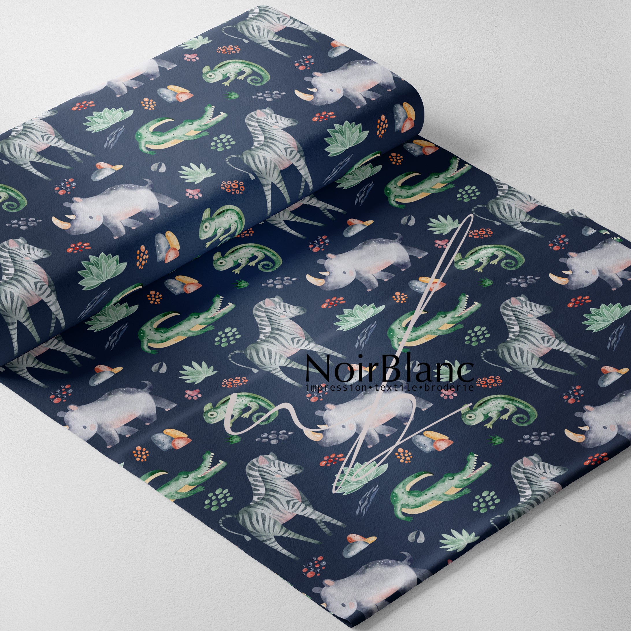 Tous nos tissus sont imprimés par sublimation ou impression directe, sur commande directement à notre atelier à Saint-Eustache, Québec, Canada dans un délai de 3 à 10 jours ouvrables.