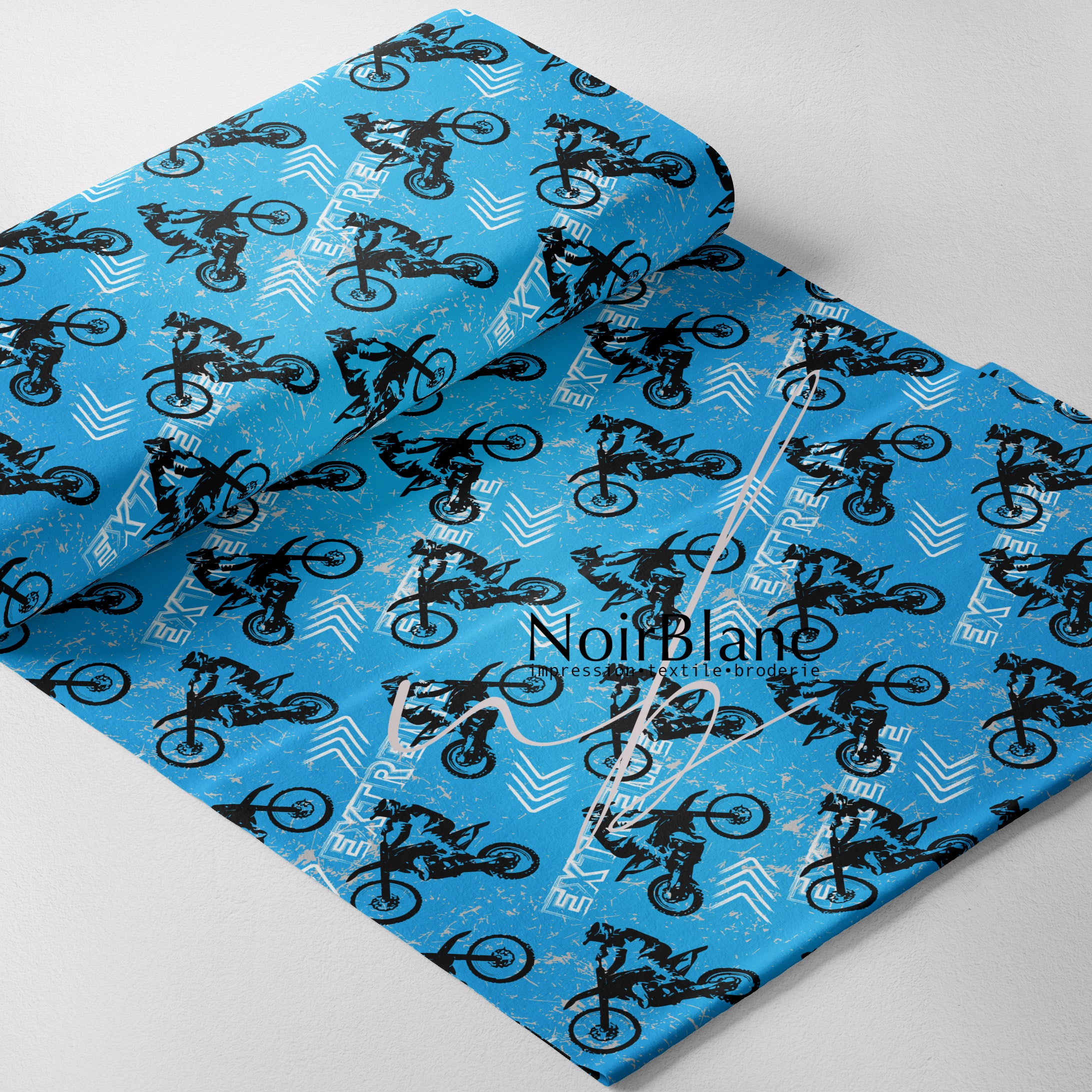 AWJ - 100% polyester made in Quebec - Width 60 inches - lightweight material, slightly stretchy, dry effect - Use: sportswear, manufacturing of washable diapers and/or sanitary napkins for dry effect or others. - Textile printing technique used: Sublimation