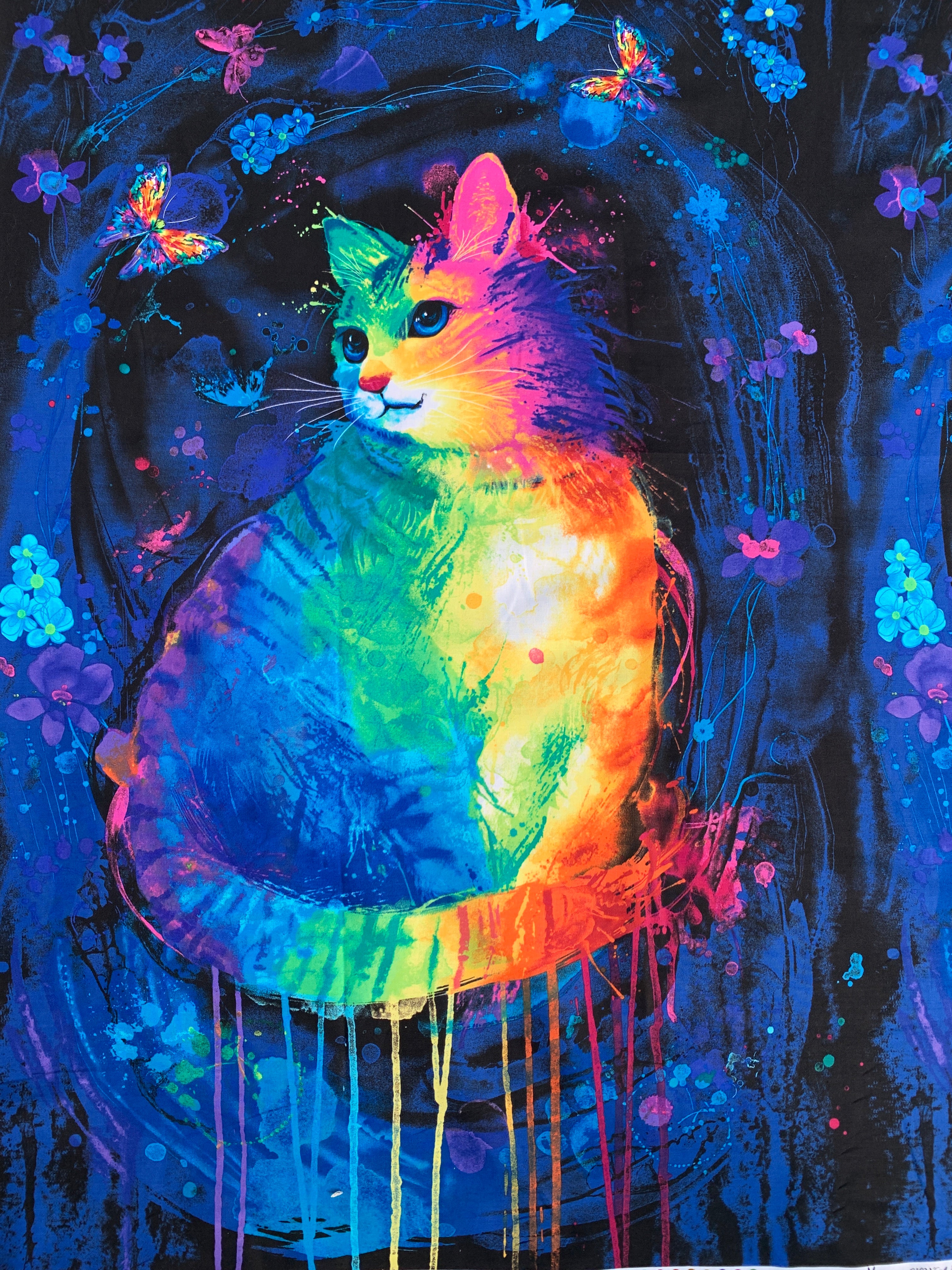 100% Cotton with Pattern - Rainbow Black