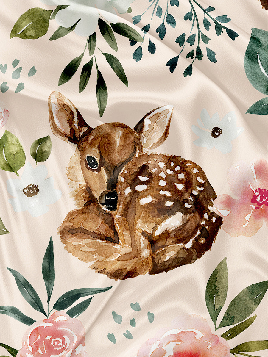 Panel for Towel and Blanket Deer pink flower