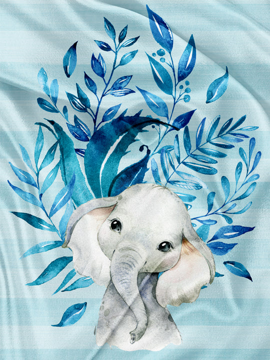 Blue Foliage Elephant Napkin and Blanket Panel