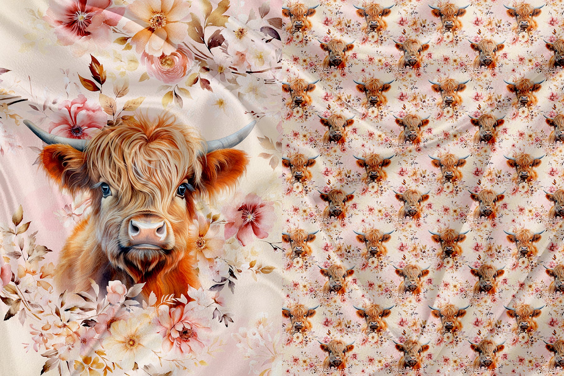 Highland Cow in Flowers Clothing and Blanket Panel