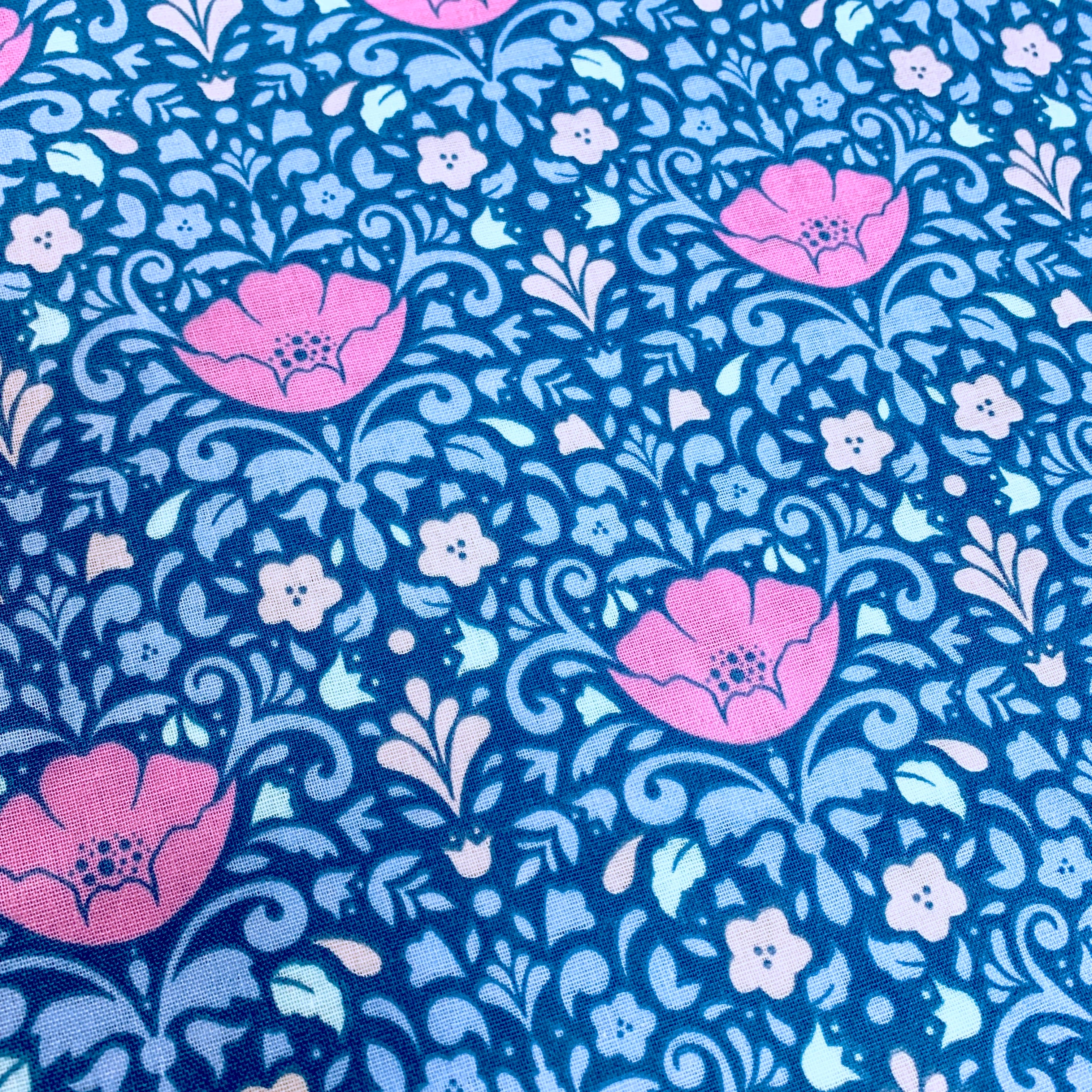 100% Patterned Cotton - double gauze - floral navy