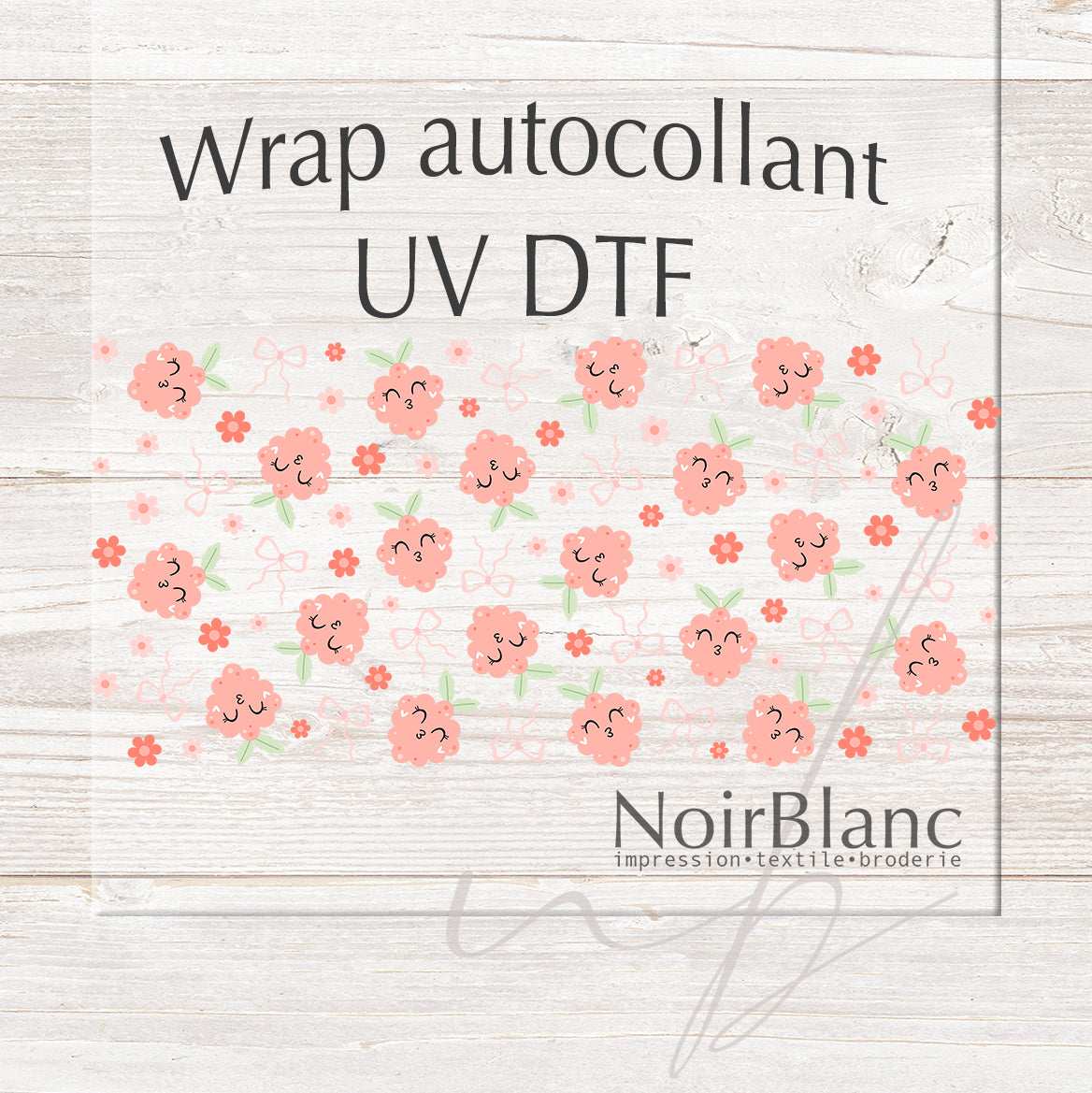 A DTF UV sticker print is an image(s) printed on a transparent film that can then be stuck to a hard, flat surface like glass, plastic, wood, metal, and some types of vinyl. Decorate to your liking: glass, water bottle, coffee mug, candle, flower pot, cell phone case, laptop, tablet, the possibilities are endless. You won't need a press or any heat.