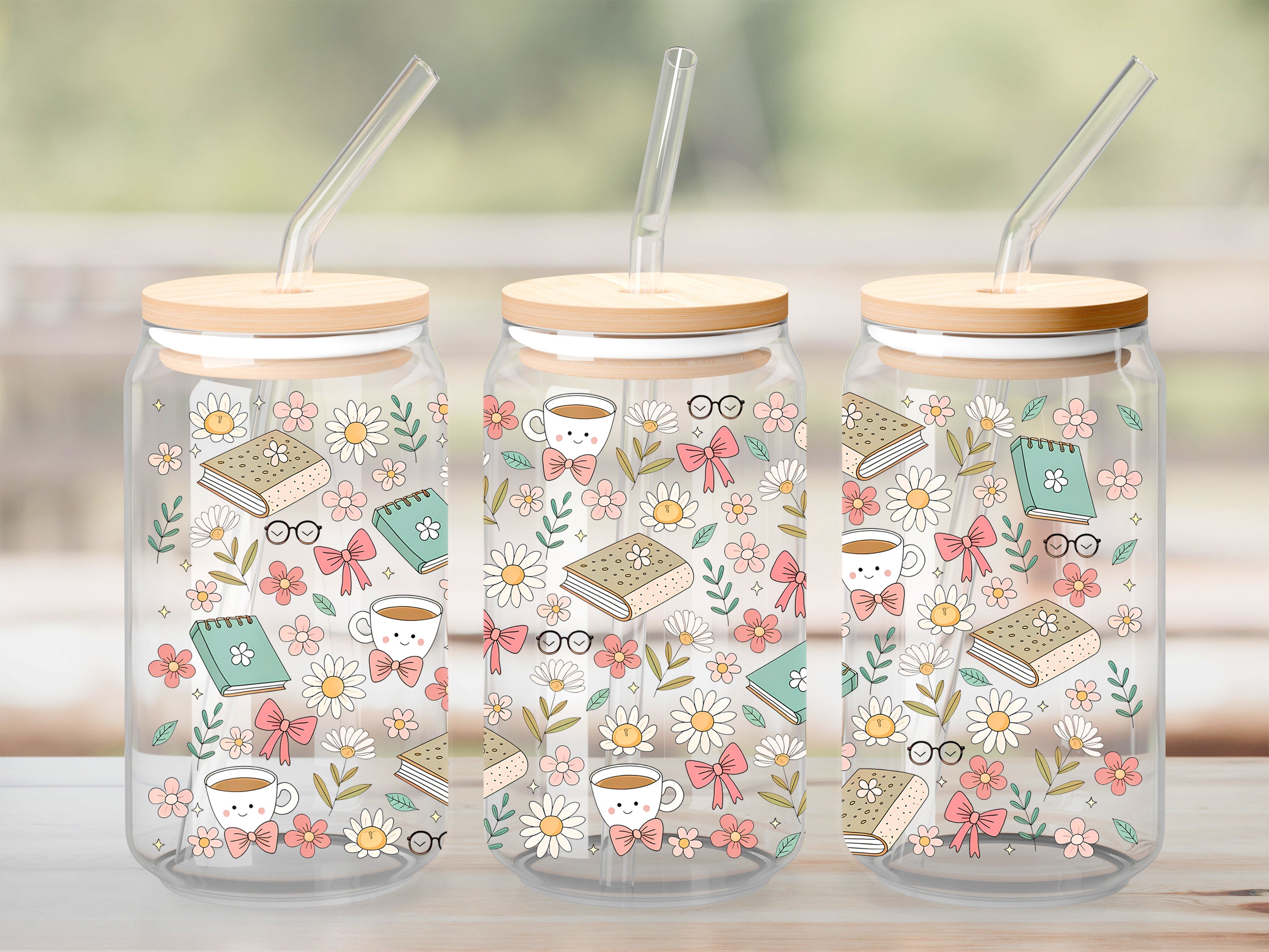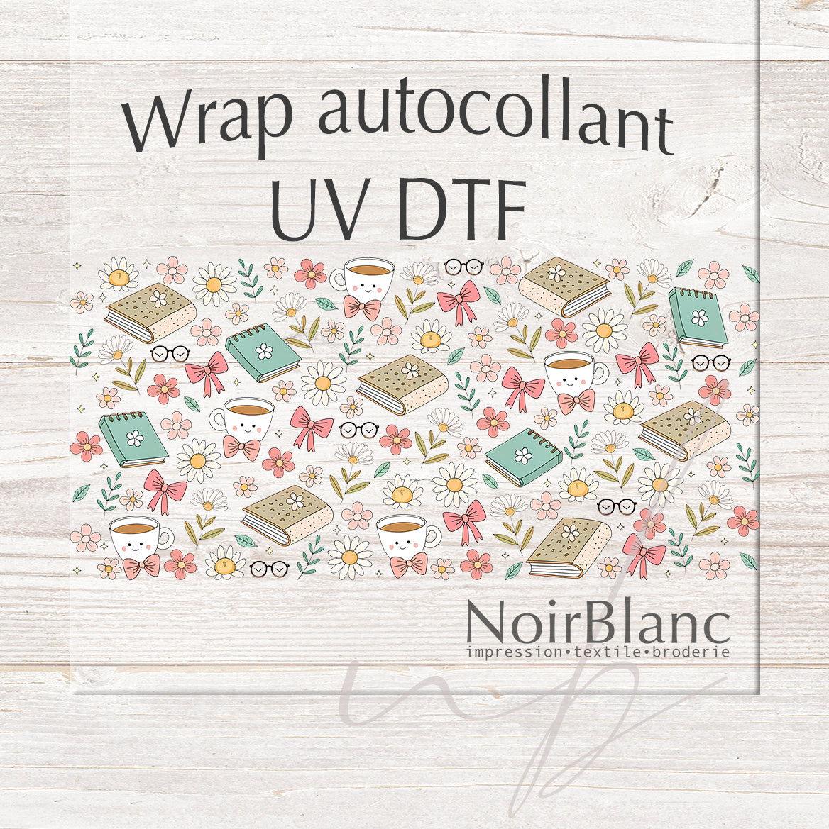 Book, coffee and flower - UV DTF (sticker)