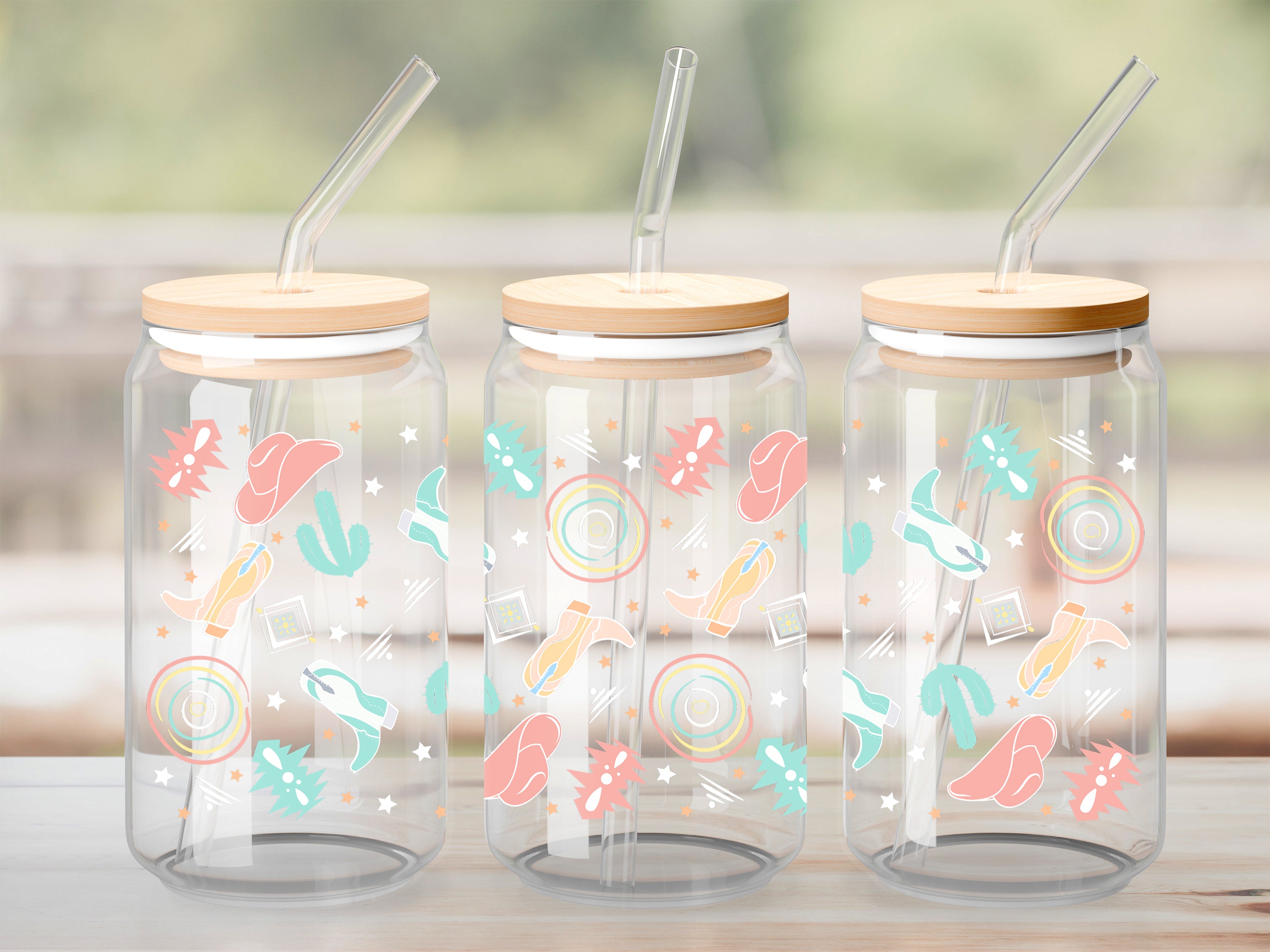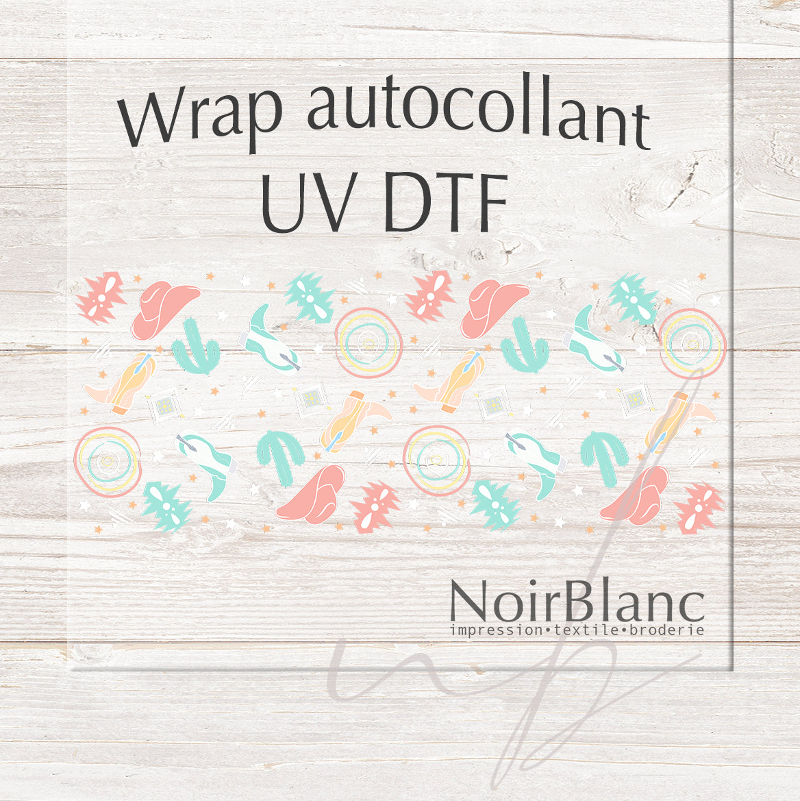 A DTF UV sticker print is an image(s) printed on a transparent film that can then be stuck to a hard, flat surface like glass, plastic, wood, metal, and some types of vinyl. Decorate to your liking: glass, water bottle, coffee mug, candle, flower pot, cell phone case, laptop, tablet, the possibilities are endless. You won't need a press or any heat.