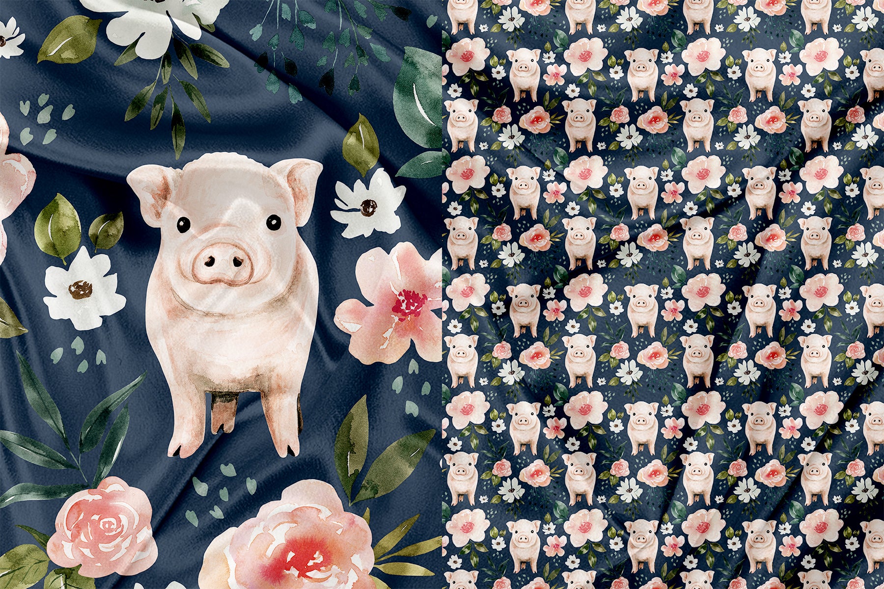 Panneau pour Vêtement et Couverture Cochon Floral
